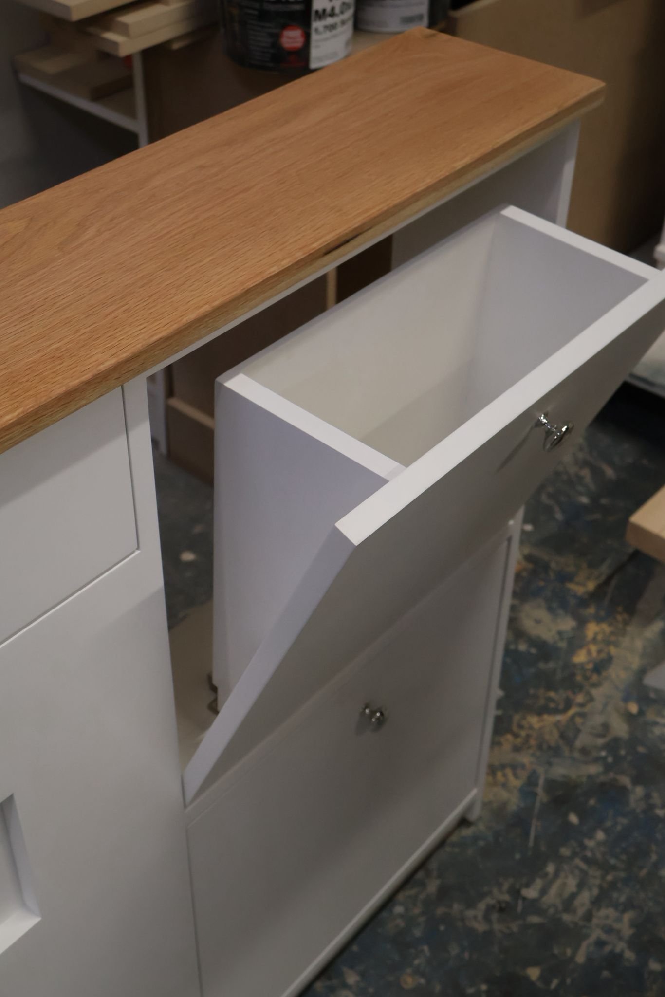 - Finish: Painted White Body with Natural Oak-Effect Top