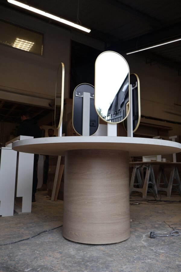 Bespoke Four Station Vanity Table – Circular Salon Station with 4 Hair Stylist Mirrors