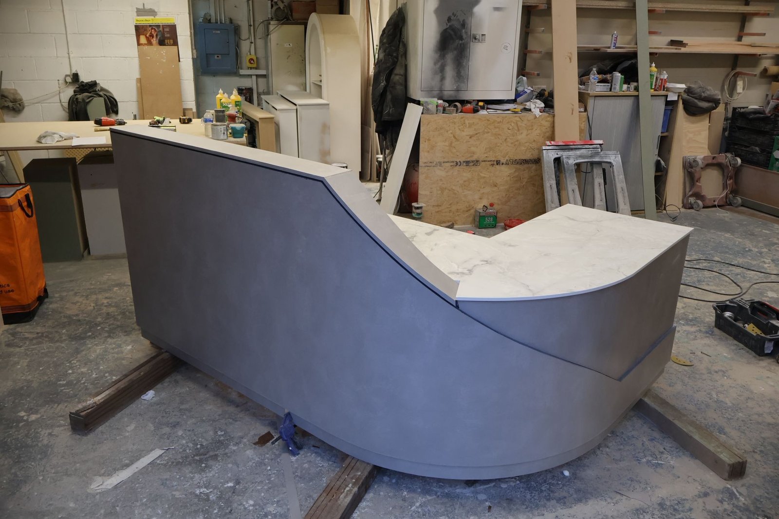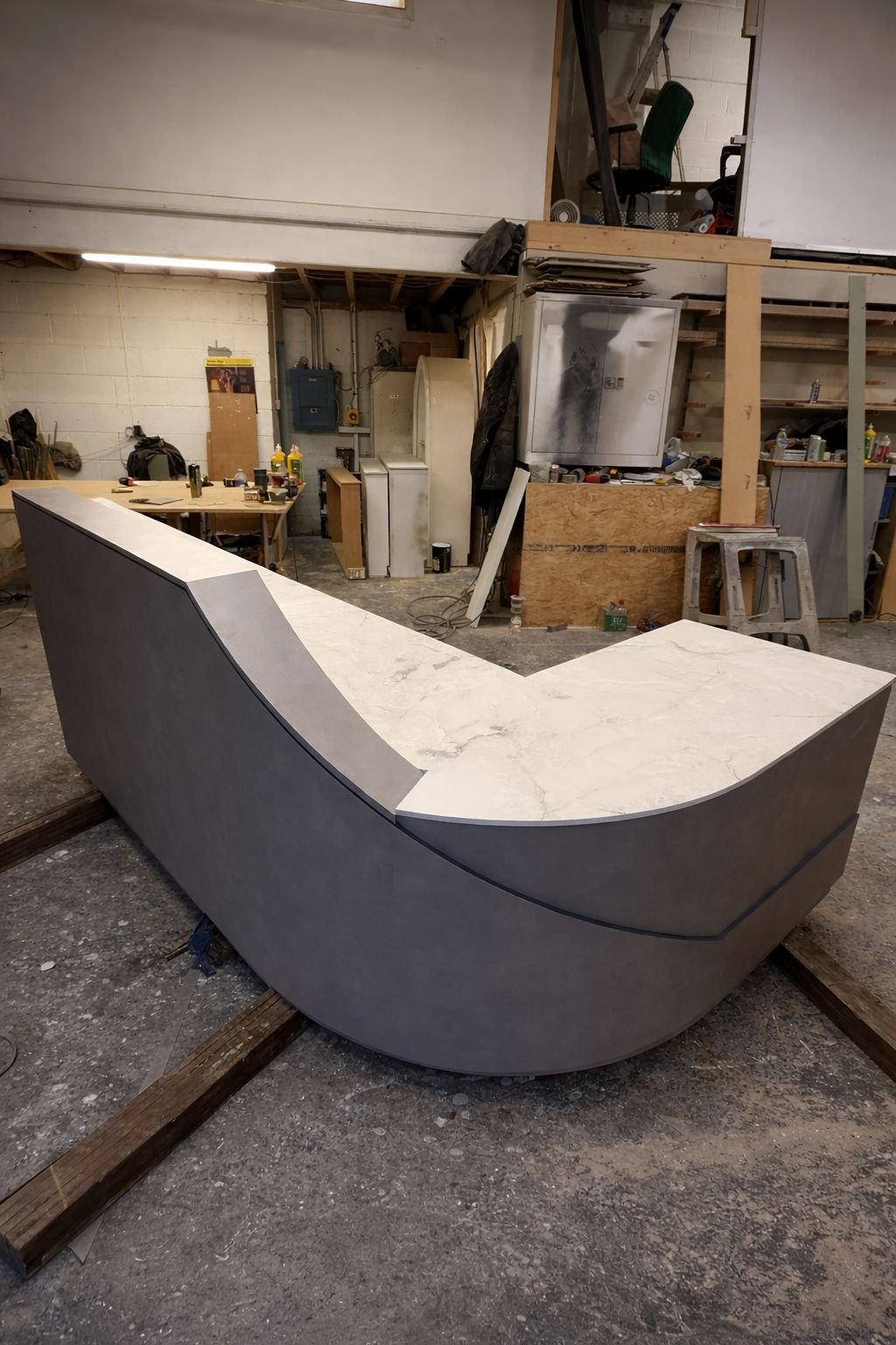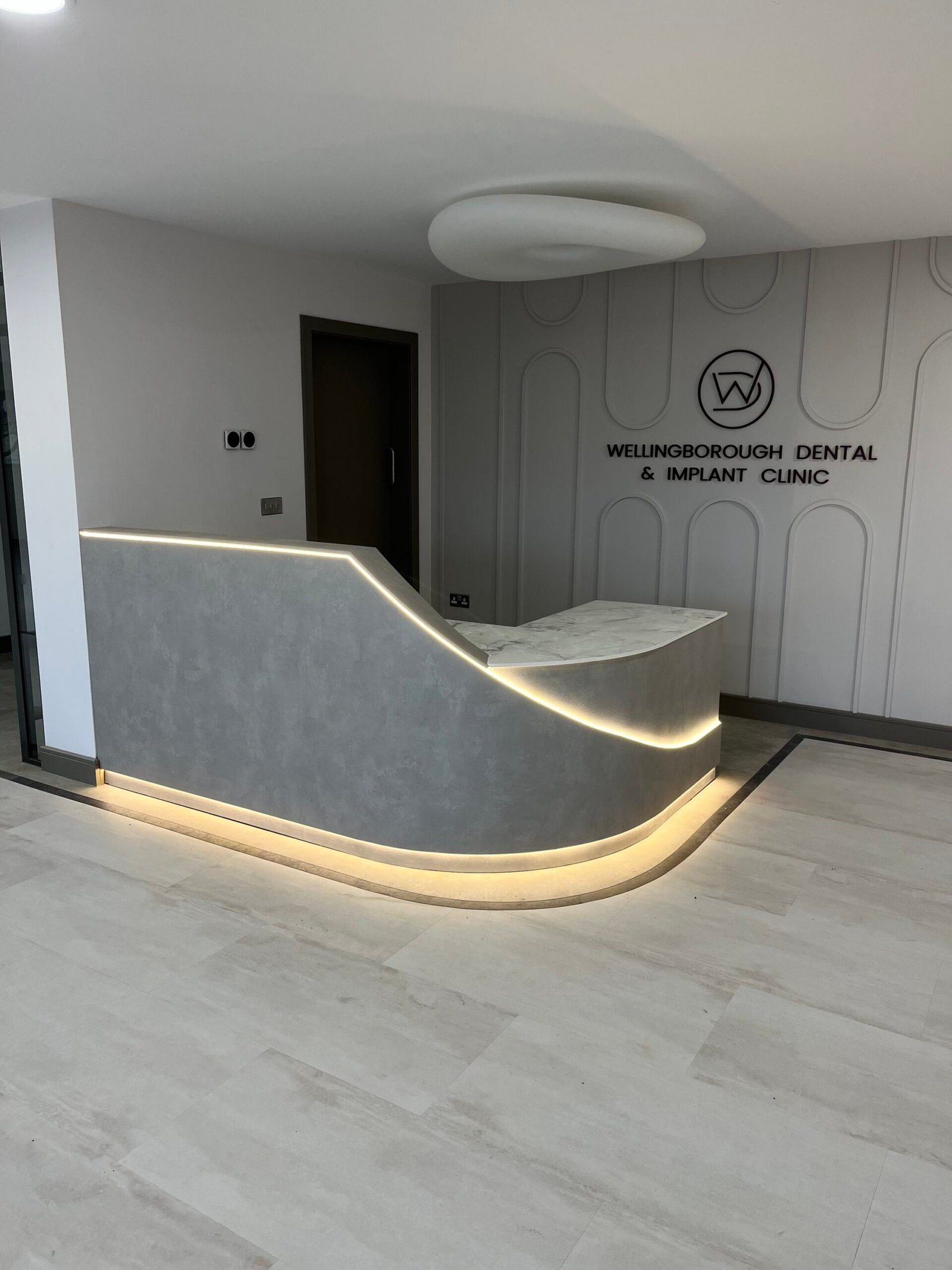 The gentle curved form enhances client interaction, making your reception area feel open and inviting. The laminate finish adds a refined modern texture, while the seamless Corian surface delivers a professional-grade aesthetic suited to high-traffic environments.